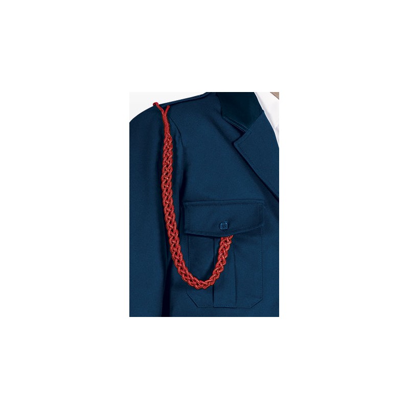 Cordón vigilante HAROLD de pasamanería trenzado con bucle en ambos extremos, colgado sobre el pecho, desde la hombrera hasta el bolsillo superior.