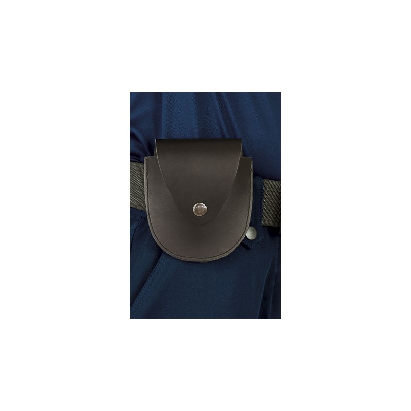 Funda porta grilletes confeccionada en material sintético simil piel, en forma de U con tapeta y cierre mediante cierre a presión, dos aberturas traseras para sujetar en el cinturón.