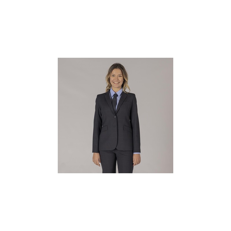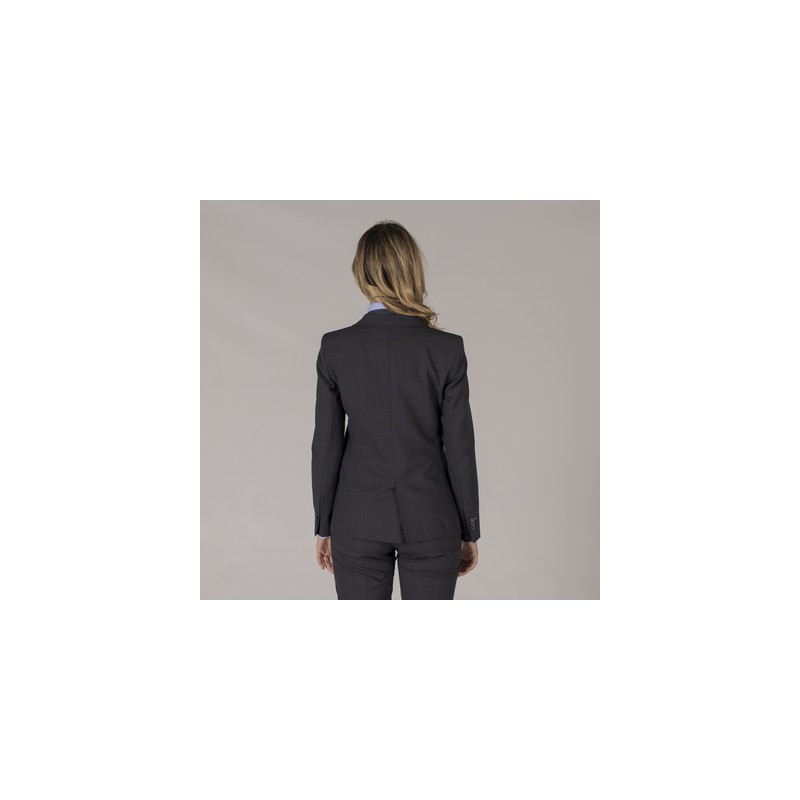 Americana para mujer con dos bolsillos laterales de cartera y abertura en la espalda.