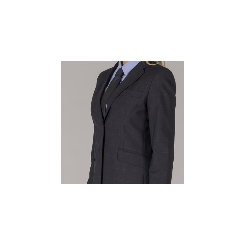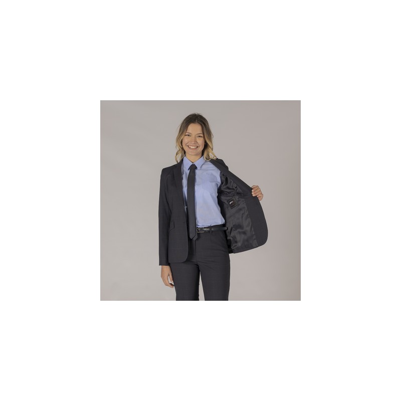 Americana para mujer con dos bolsillos laterales de cartera y abertura en la espalda, forro completo confeccionado en TRIP, textura suave y fresca, elasticidad, comodidad y el movimiento y no acumula electricidad estática.