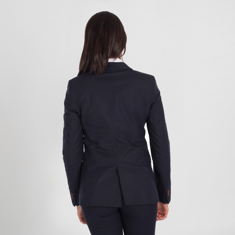Americana de mujer ajustada, con dos botones, pinzas en delantero y abertura trasera central, dos bolsillos de vivo y cartera laterales y un bolsillo de vivo en pecho, confeccionado en tejido COLD (205 gr/m²) de 97% Algodón - 3% Elastano.