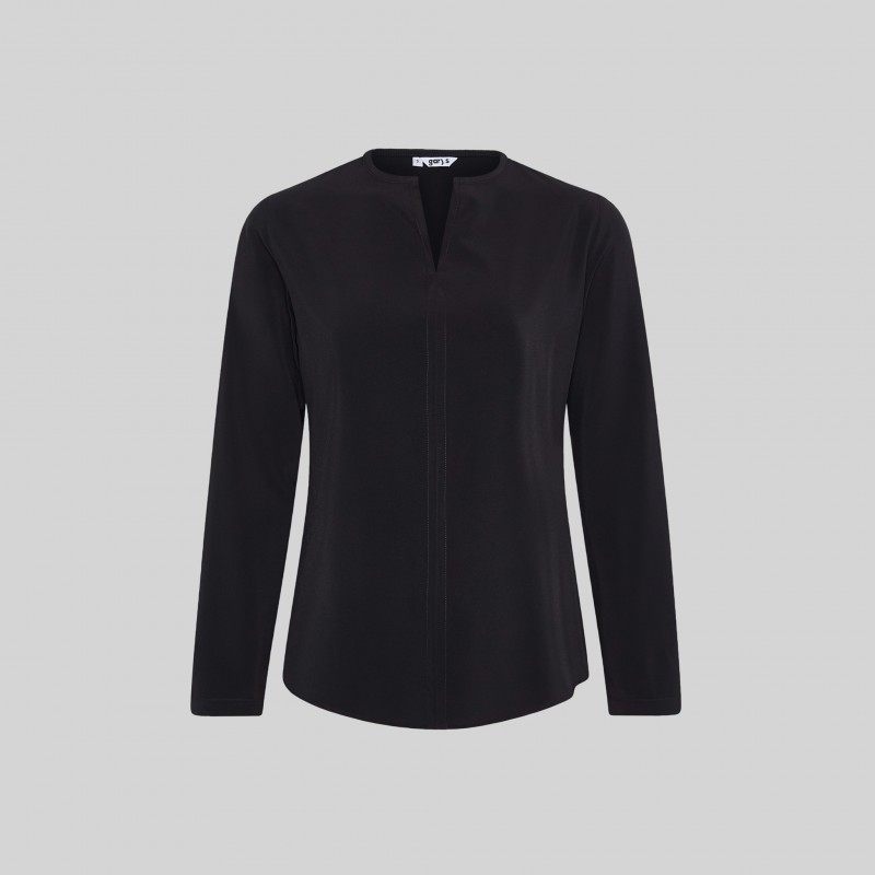 Confeccionada en PLANA ELÁSTICA de 86% Poliéster - 14% Elastano, esta blusa proporciona un tacto suave, frescura y alta resistencia a las arrugas.