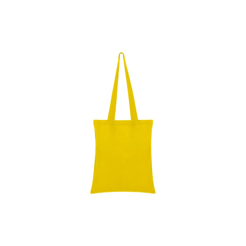 Bolsa fabricada en tejido de algodón en color, con asa larga de cinta en el mismo color.
