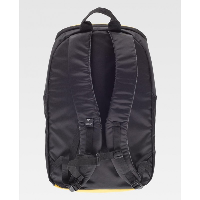 Mochila enrollable, con capacidad de 25 litros, un compartimento de gran capacidad con cierre de hebillas, compartimento en el interior para ordenador portátil, un bolsillo frontal con cierre de cremallera, ajustes en los laterales, asa en la parte superior, espalda acolchada y detalles reflectantes.