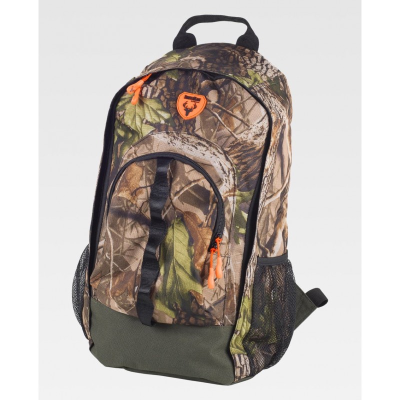 Mochila plegable y multibolsillos combinada con estampado, pensada para uso profesional y diario con una estructura práctica y ligera. Incluye un compartimento principal de gran capacidad con subdivisión interior, cierre de hebilla, bolsillo frontal con cremallera y dos compartimentos laterales de rejilla.