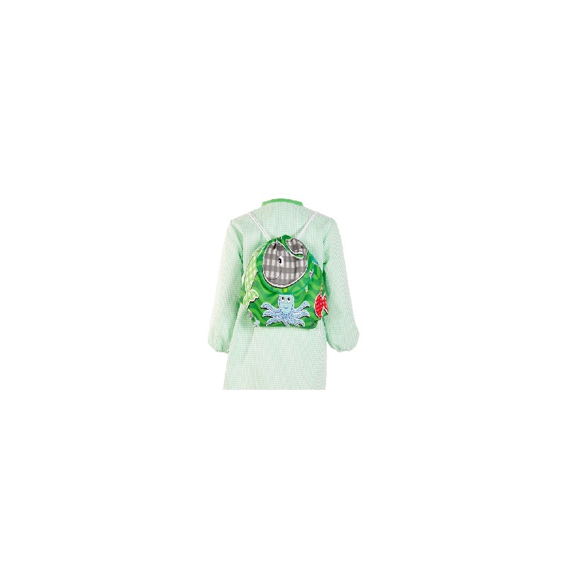 Babi escolar unisex con diseño alegre de Agatha Ruiz de la Prada para guarderías y parvulitos. Estampado de dados multicolor en delantero y espalda con mangas y bolsillo central en fucsia. Cuello redondo con goma y puños elásticos para un ajuste cómodo durante todo el día.