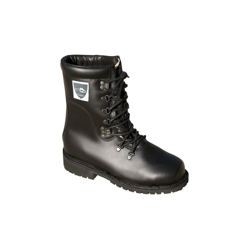 Bota en piel flor con puntera y lámina, suela anti-deslizamiento y resistente a hidrocarburos.