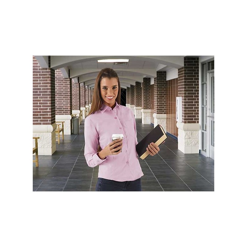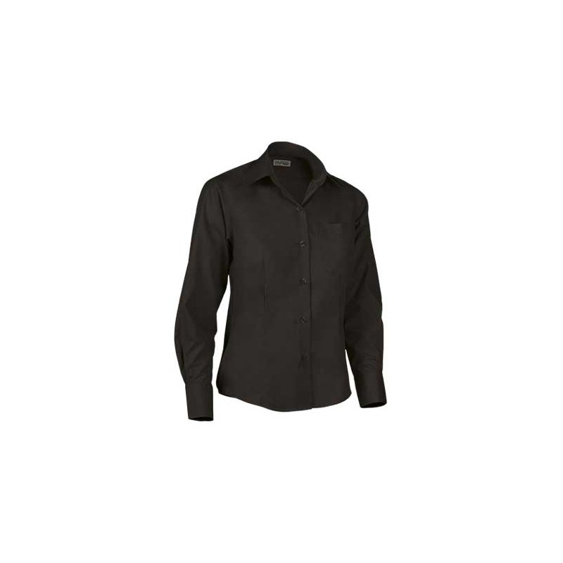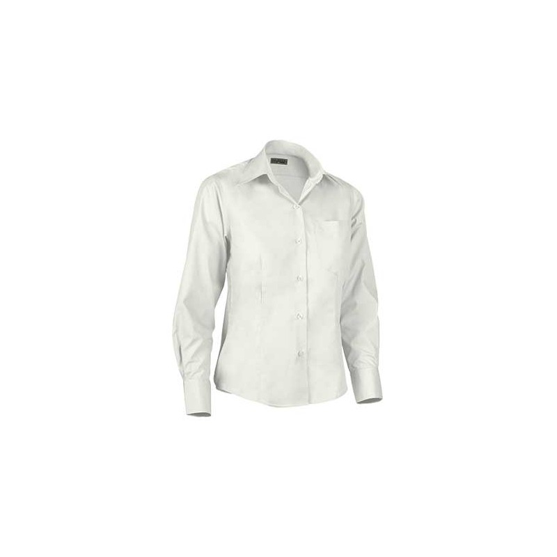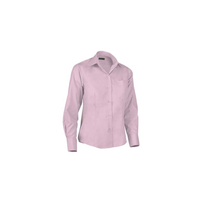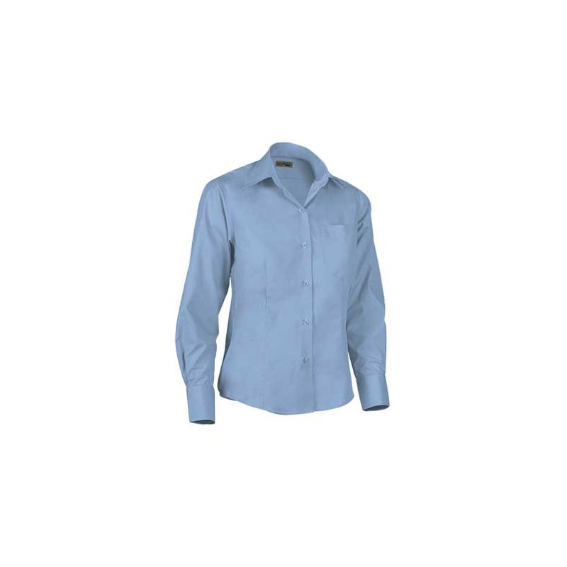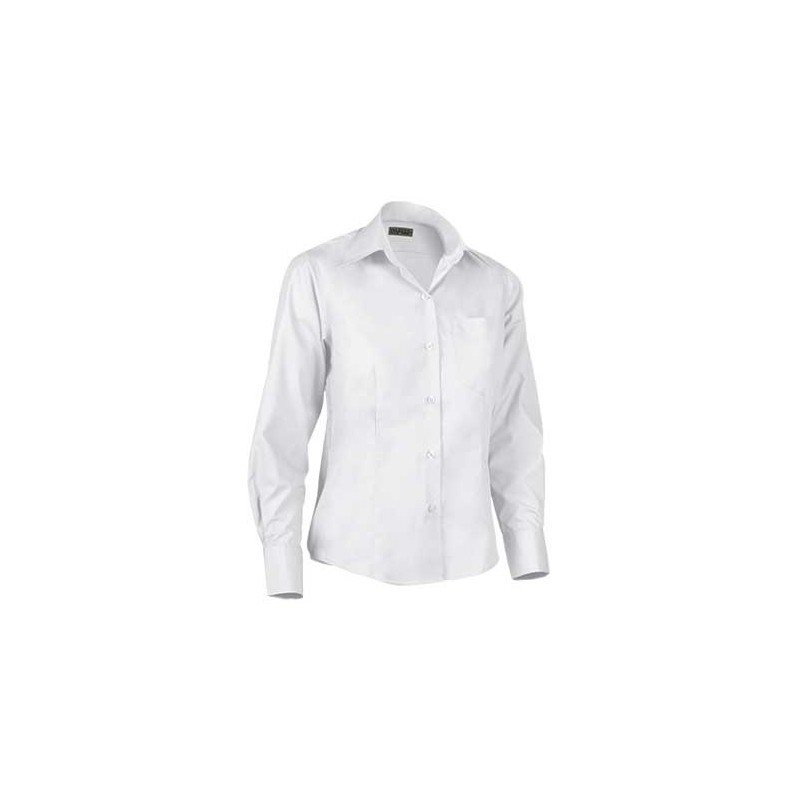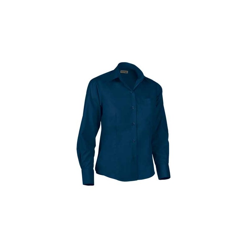 Camisa de mujer de manga larga y corte entallado con pinzas, confeccionada en tejido popelín ligero y resistente.