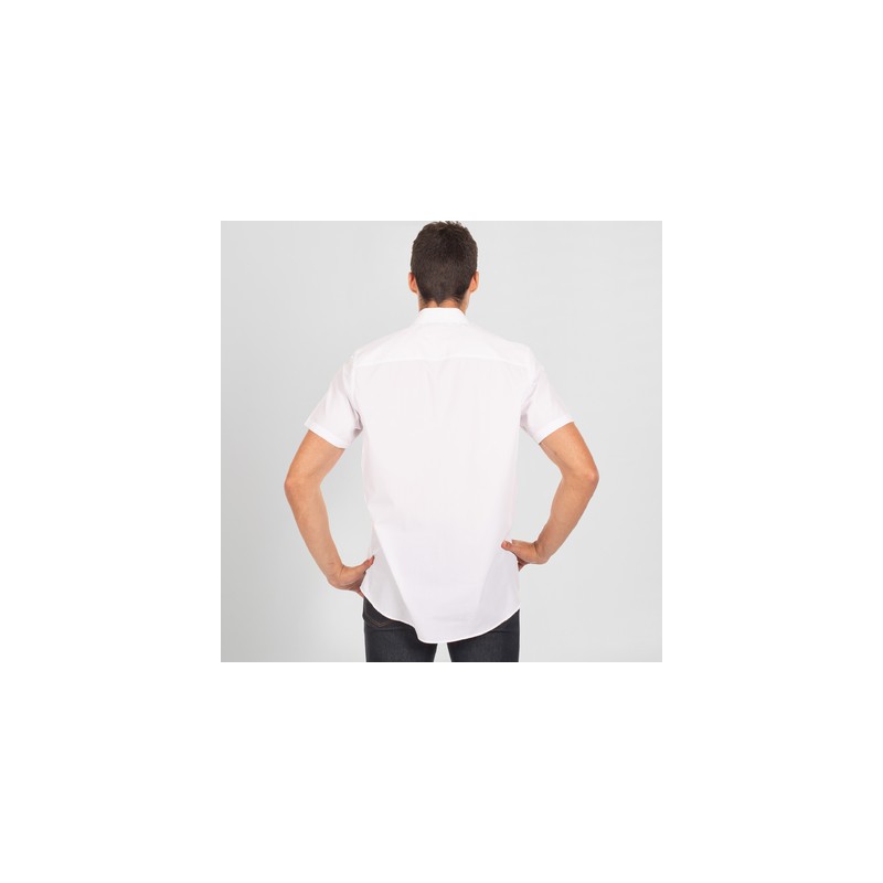 Camisa de hombre en manga corta con un bolsillo en el pecho izquierdo y canesú en la espalda.