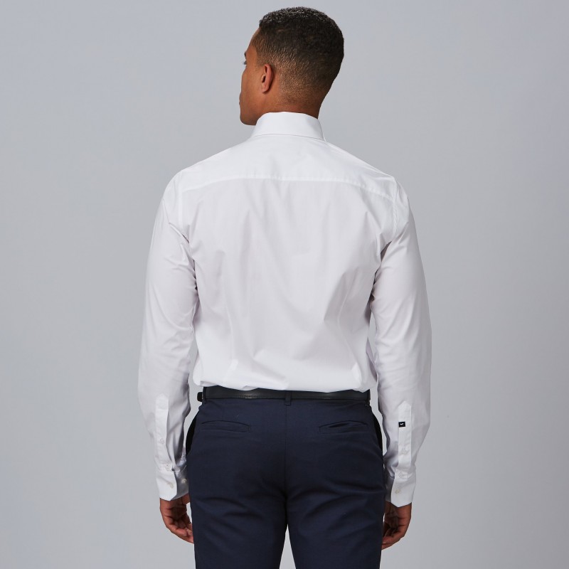 Camisa slim fit de hombre con cuello con botones para una imagen moderna y profesional. Sarga de fácil cuidado (50% Poliéster, 50% Algodón) y manga larga con puño abotonado. Pliegues y canesú en espalda para un entalle cómodo durante toda la jornada.