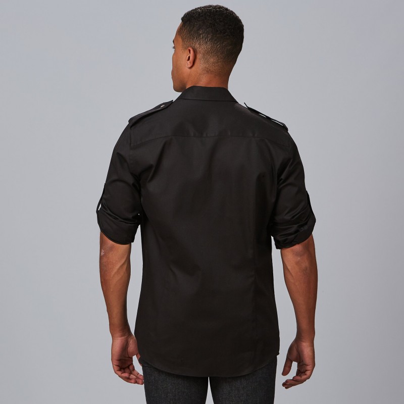 Camisa profesional con charreteras y patrón semi ajustado para una imagen cuidada en uniformidad. Tejido Serene en popelín elastán que aporta comodidad, resistencia y fácil planchado. Diseño funcional con dos bolsillos frontales y manga larga con puño abotonado.
