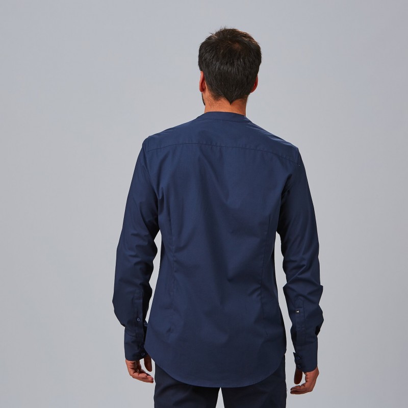 Camisa profesional Slim Fit con cuello chimenea y manga larga para una imagen moderna y funcional. Tejido elástico de fácil cuidado que favorece la movilidad y el confort en jornadas intensas. Pinzas y canesú en espalda para un entalle limpio y acabado pulido con botones vistos.