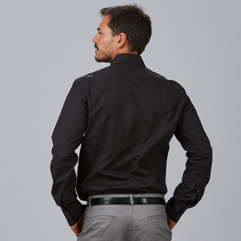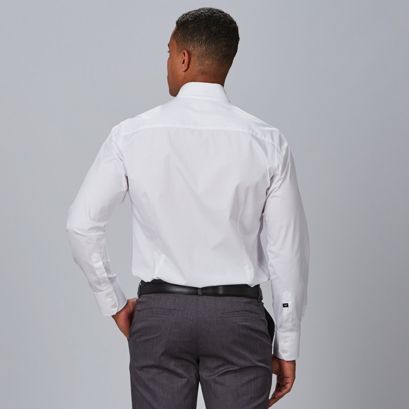 Camisa profesional de corte slim fit con cuello chimenea para una imagen moderna y cuidada. Tejido Elysian en popelín elástico que aporta comodidad, resistencia y fácil planchado. Manga larga con puño abotonado, pinzas y canesú en espalda para un entalle impecable en el día a día.