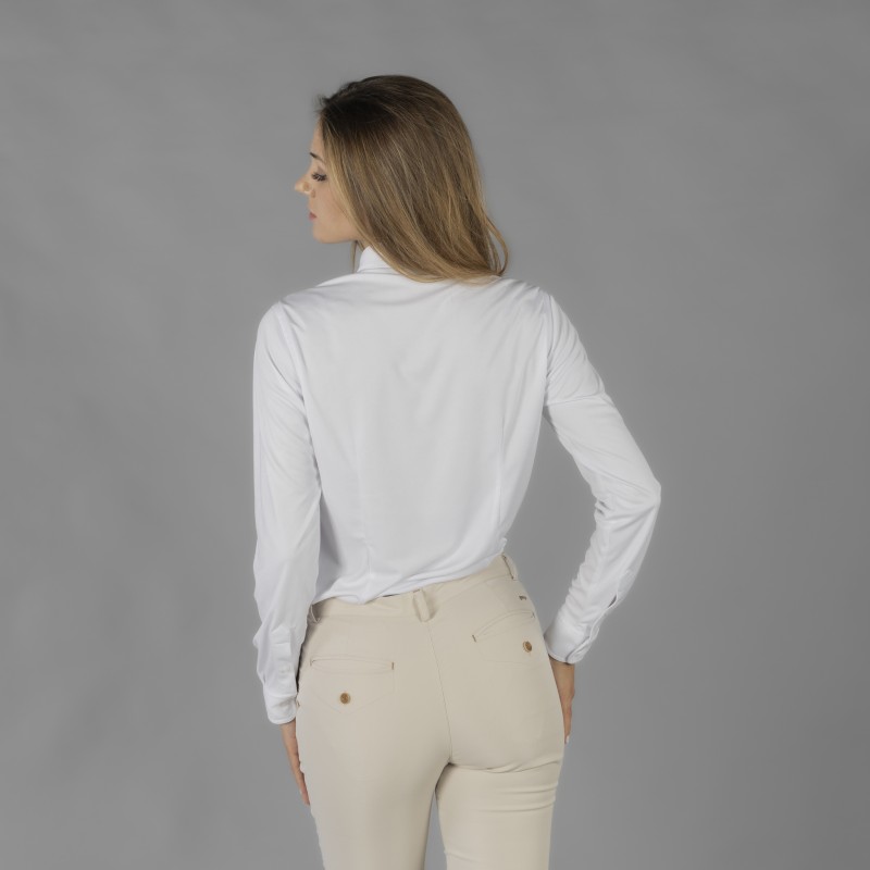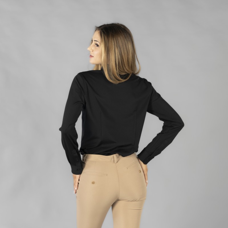 Camisa técnica para mujer con diseño elegante y funcional pensada para el uso diario profesional. Patrón semi entallado que realza la figura y asegura comodidad durante toda la jornada. Tejido elástico de fácil cuidado para una presencia siempre impecable.