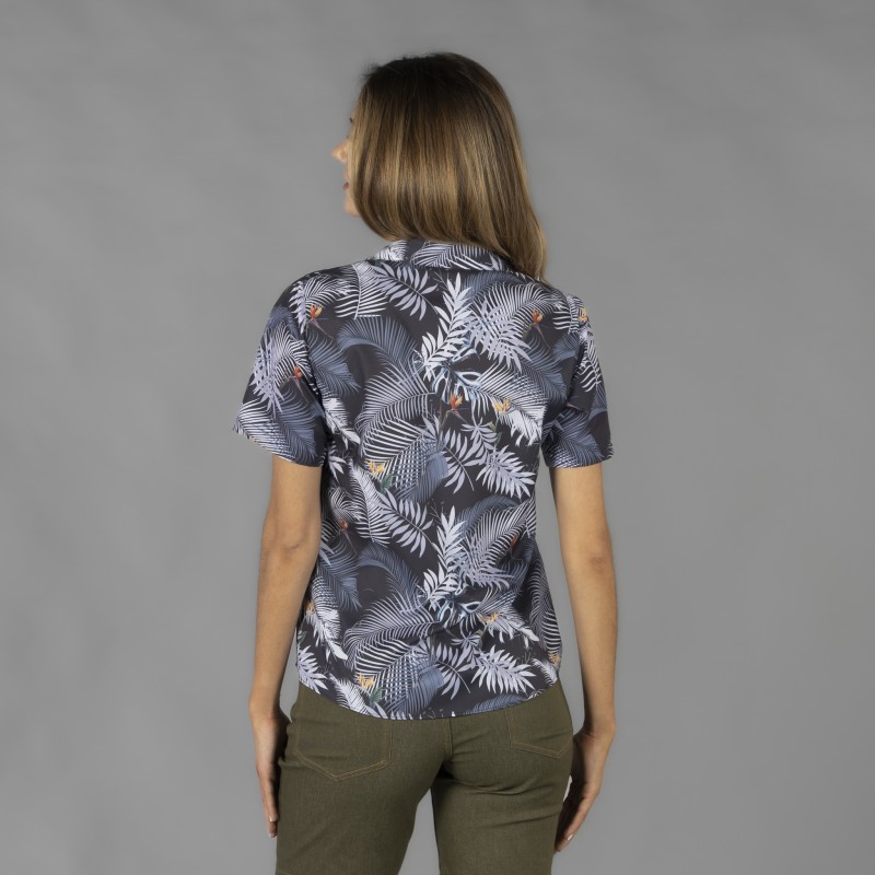Camisa hawaiana profesional de manga corta con cuello de solapa para una imagen fresca y cuidada en hostelería y comercio. Tejido Plana 100% Viscosa de tacto suave y caída ligera para máximo confort durante la jornada. Canesú en espalda y bolsillo de pecho que aportan estructura y funcionalidad sin perder estilo.