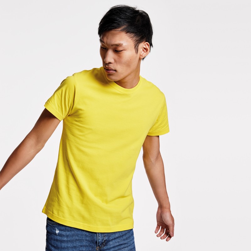 Camiseta de manga corta, cuello redondo de 4 capas y cubre costuras reforzado en cuello y hombros.