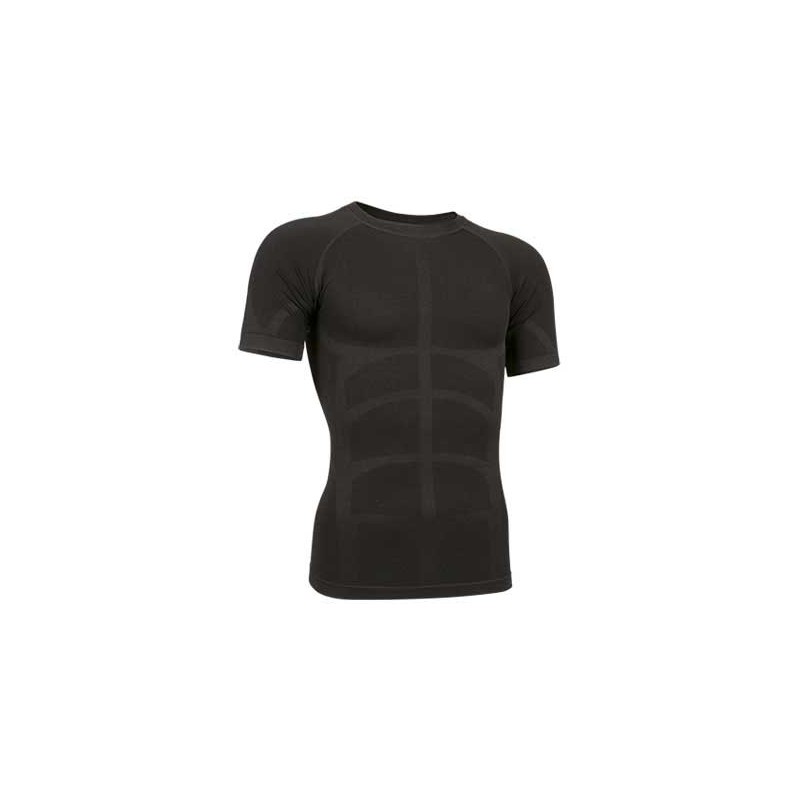 Camiseta ceñida de manga corta y gran elasticidad, que se adapta perfectamente al cuerpo como una segunda piel, confeccionada en tejido de última generación intarsia 2D que proporciona una alta retención térmica y gran transpirabilidad.