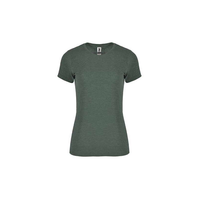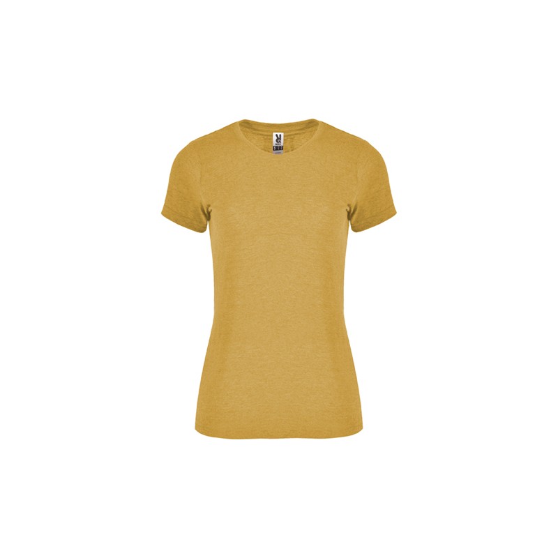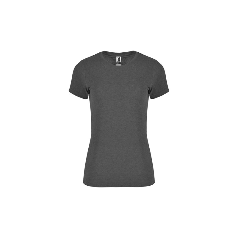 Camiseta de manga corta mujer, en tejido vigoré, cuello redondo en punto canalé 1x1 con cubrecosturas de refuerzo en su interior.