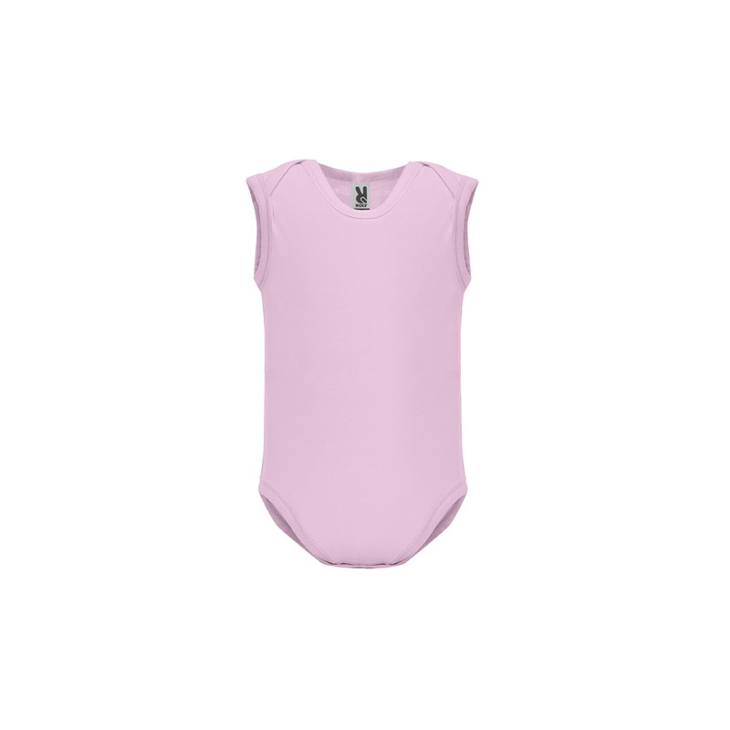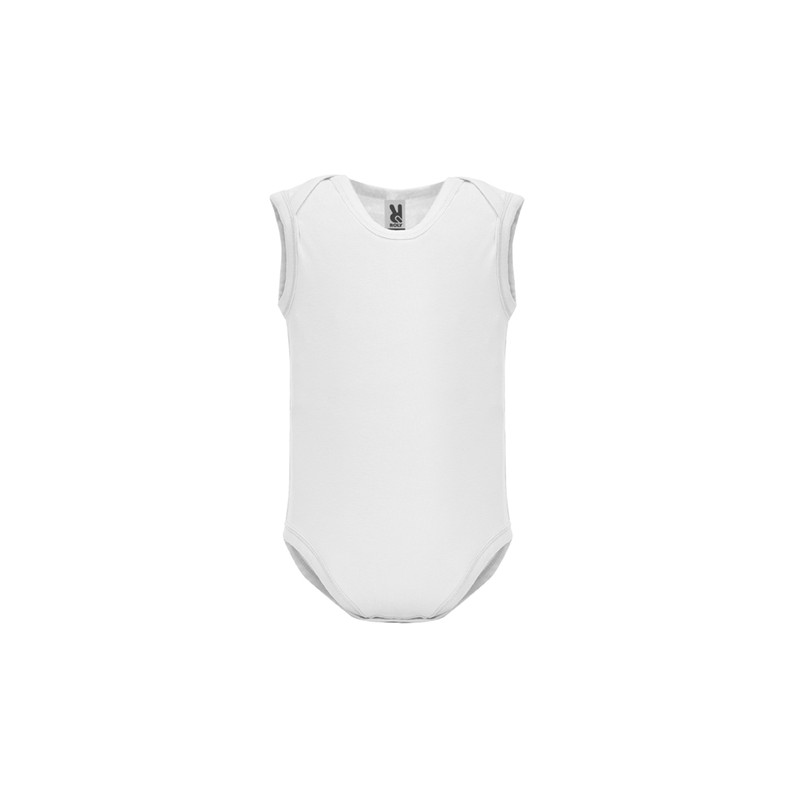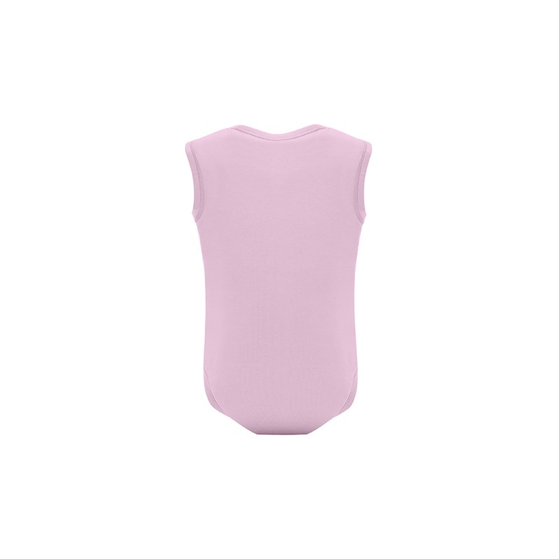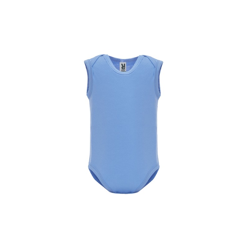 Body de bebé de tirantes de punto liso, cuello redondo, sisas y bajo ribeteado en canalé 1x1, cierre con botones a presión en la entrepierna y hombro de apertura cruzada.