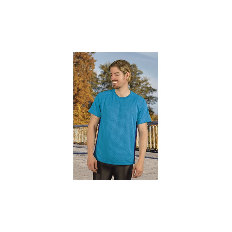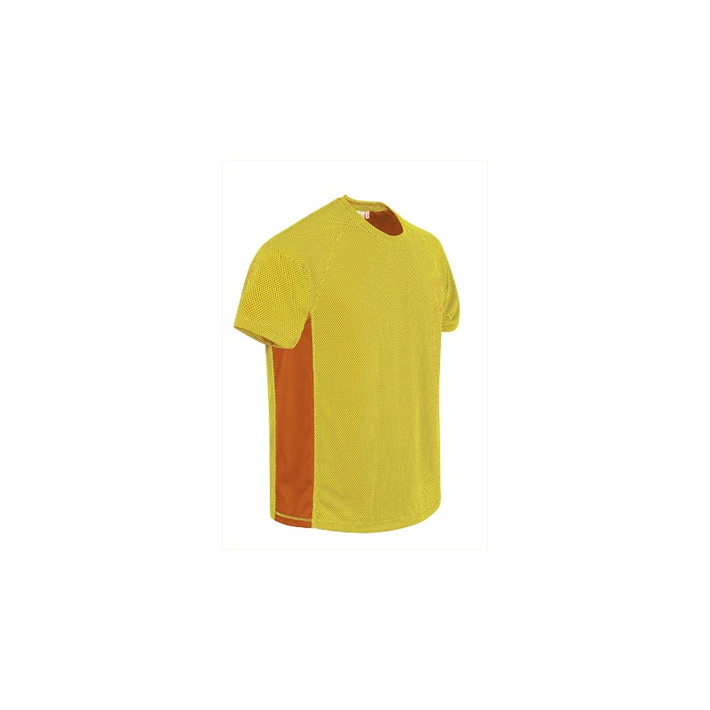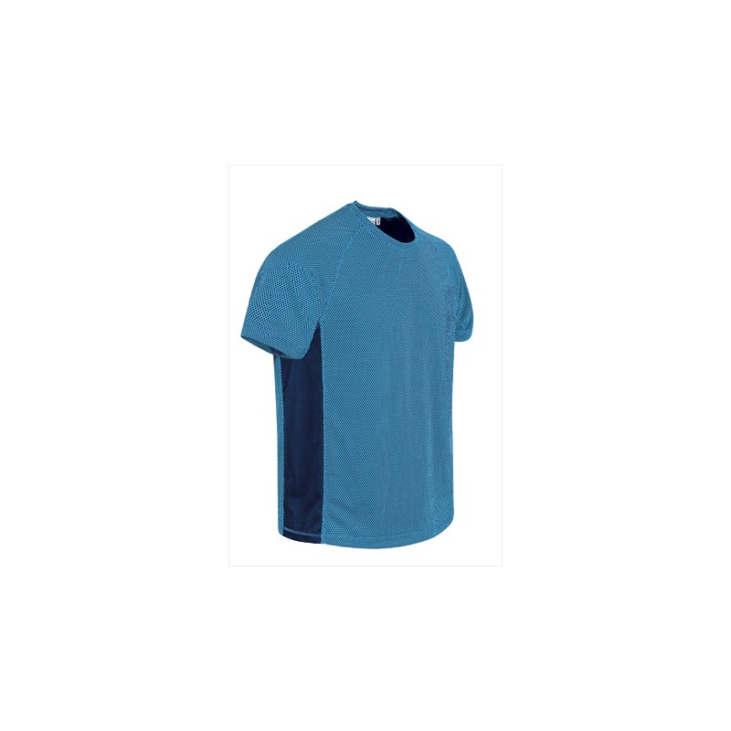 Camiseta técnica bicolor, especialmente diseñada para hacer deporte por su confección en tejido técnico transpirable, que facilita la evacuación del sudor corporal.