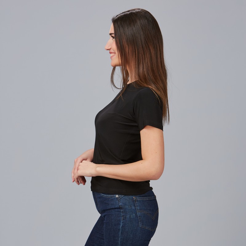 Fabricada con PUNTO ELÁSTICO de primera calidad, la camiseta SABINA garantiza una comodidad excepcional.