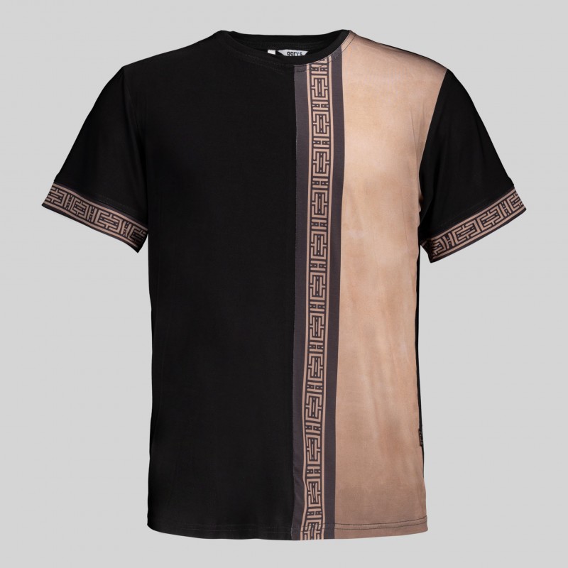 Esta camiseta de manga corta presenta un cuello redondo y se destaca por su original estampado en el frente y el filo de las mangas, proporcionándote un look único que te permite destacar entre la multitud.