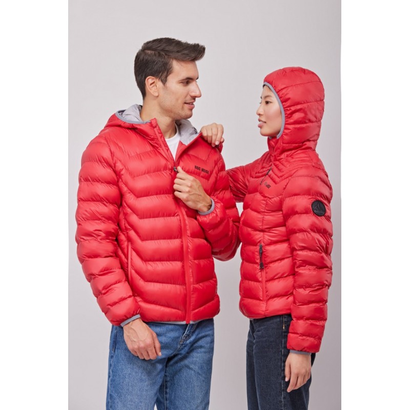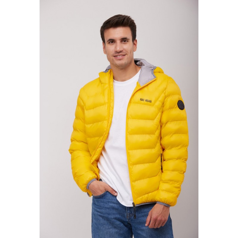 Cazadora REFAR de mujer acolchada con un patrón de costuras que potencian la imagen del canesú característico de la marca, capucha y cuello alto, tratamiento repelente al agua y cremalleras impermeables y dos bolsillos laterales interiores con cremallera. Suave tejido exterior 100% nylon.