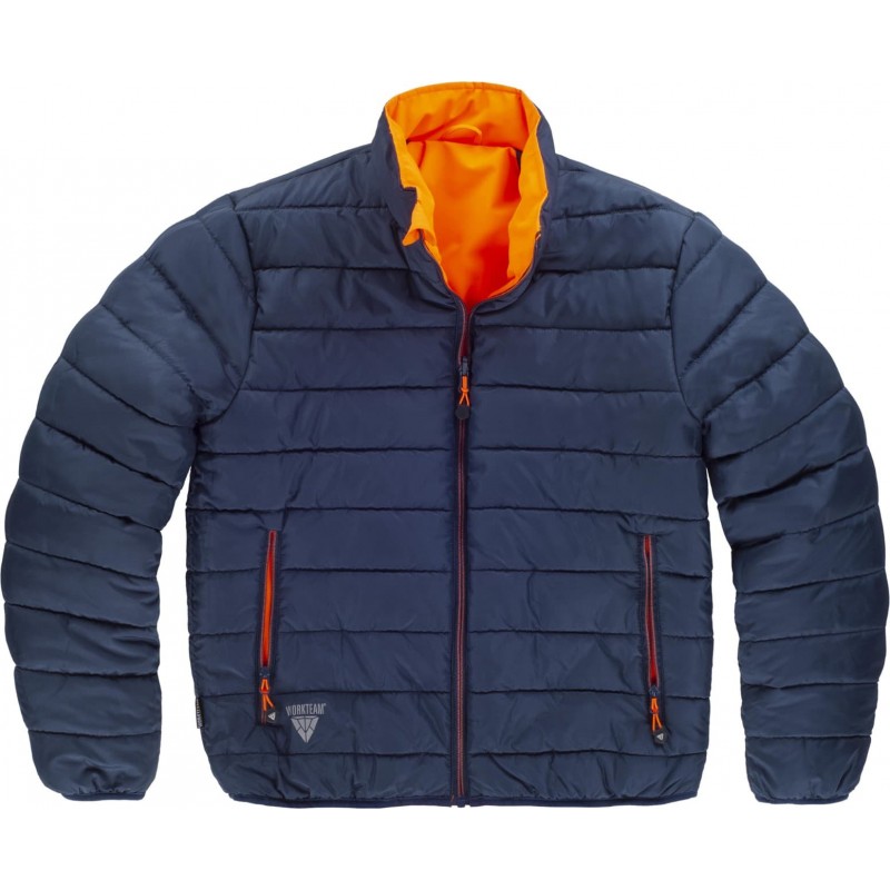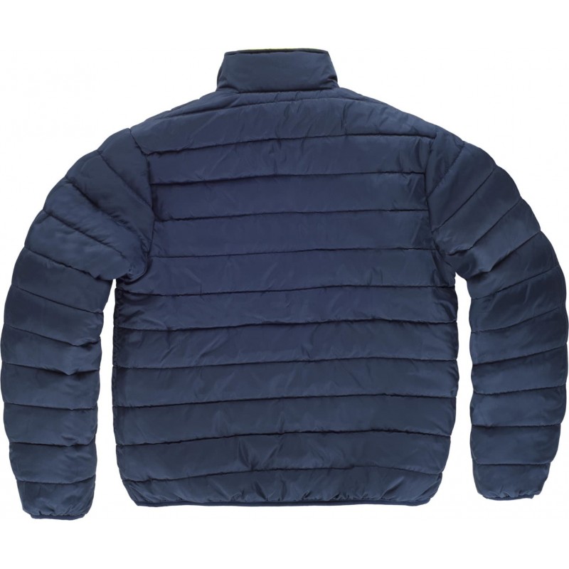 Cazadora reversible acolchada con cuello alto con cierre de cremallera de nylon, solapa protectora cubriendo la cremallera y ribeteado con bies elástico a contraste.
