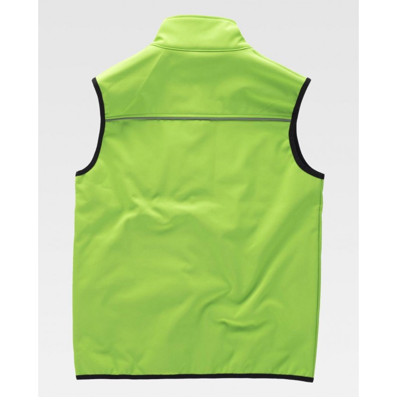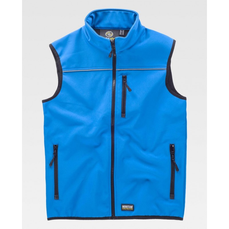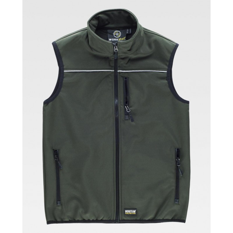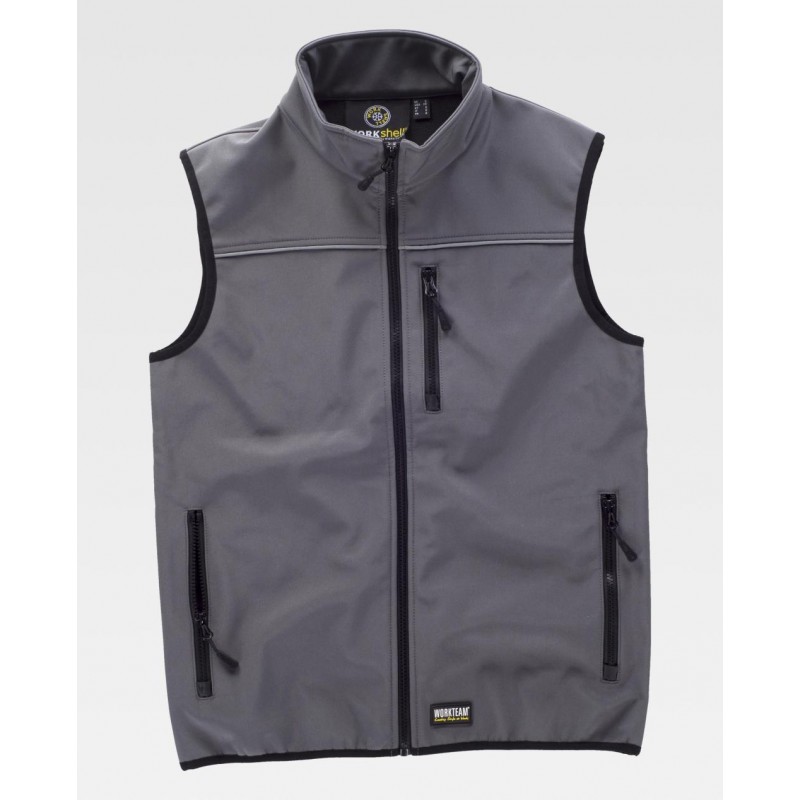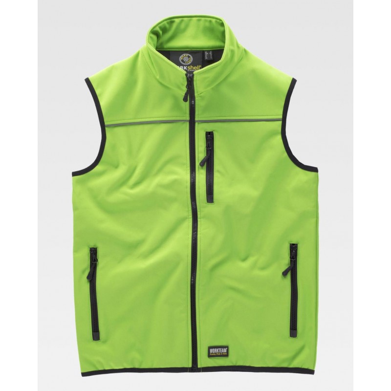 Workshell con cierre de cremallera de nylon, cuello alto, puño con velcro y un bolsillo de pecho con cremallera de nylon.