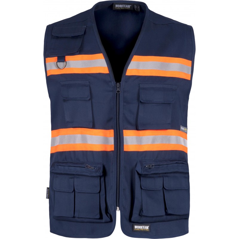 Pantalón con cierre de botón y cremallera, cintura elástica en espalda, dos bolsillos laterales, dos bolsillos en perneras de carga con cartera de velcro, un bolsillo trasero con cierre de presilla y botón y cintas reflectantes combinadas en perneras.