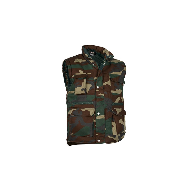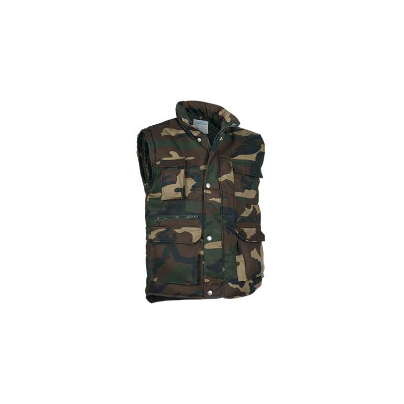 Chaleco multibolsillos confeccionado en tejido de sarga con relleno acolchado y forro interior.