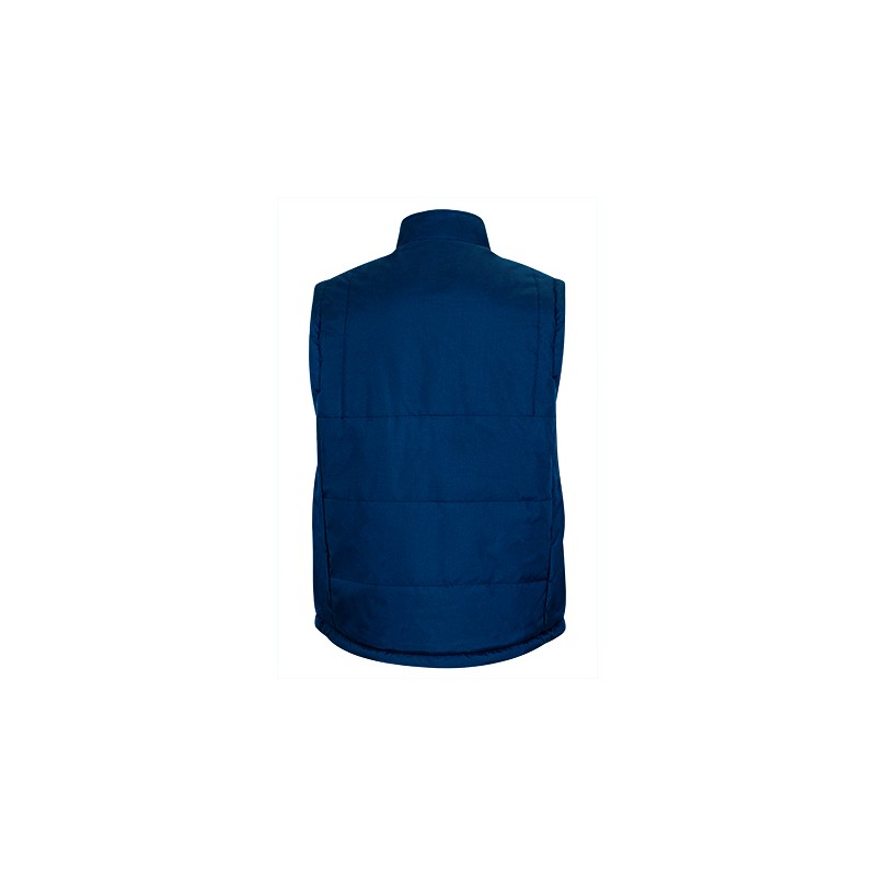 Chaleco de abrigo confeccionado en tejido Oxford hidrofugado con relleno acolchado y forro interior polar antipeeling, de alto efecto calórico, cuello alto y cremallera frontal entera, dos bolsillos delanteros oblicuos y uno horizontal en pecho izquierdo, los tres con cierre de cremallera.