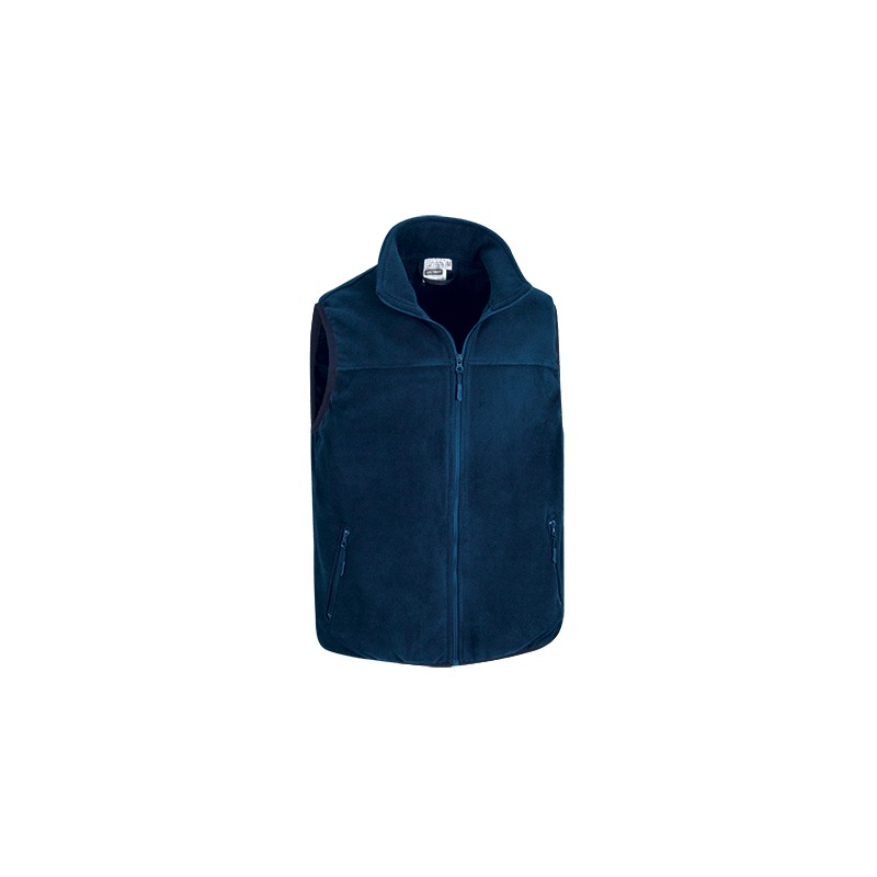 Chaleco polar confeccionado con tejido polar anti-peeling 100% poliéster, cuello alto con cremallera y tirador, bandas elásticas en las mangas y en el bajo para un mayor ajuste y retención térmica.