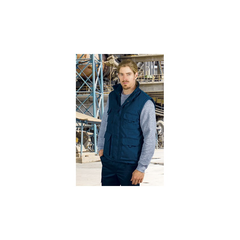 Chaleco multibolsillos confeccionado en tejido canvas con relleno acolchado y forro interior en tejido polar antipeeling que le aporta mayor efecto calórico.