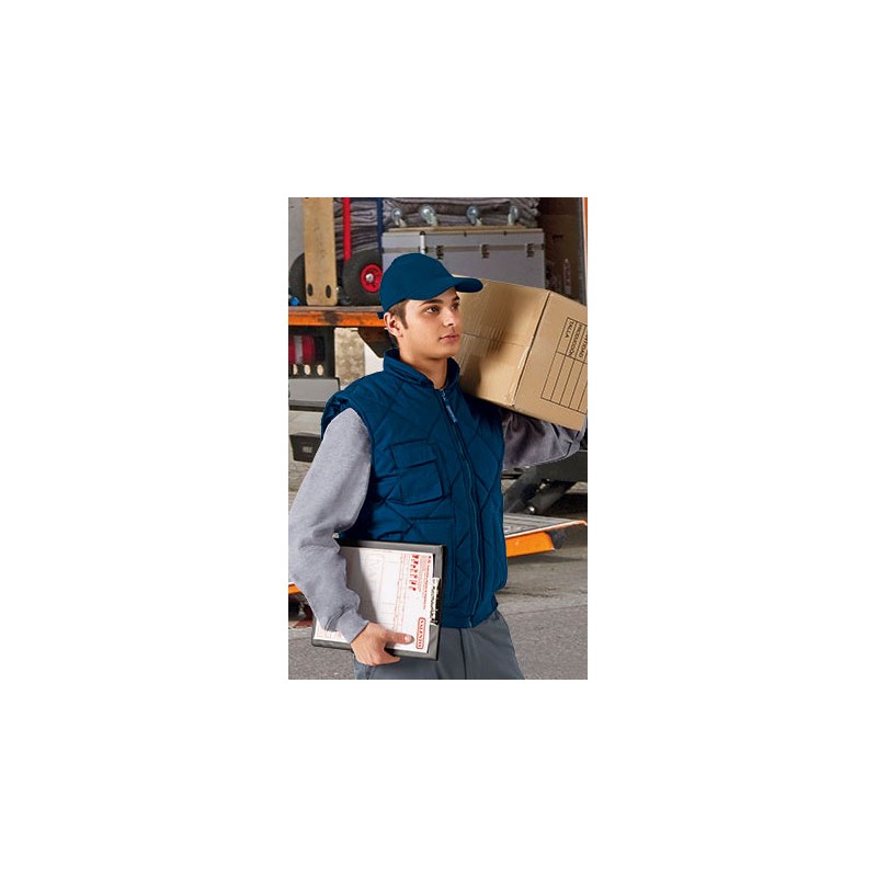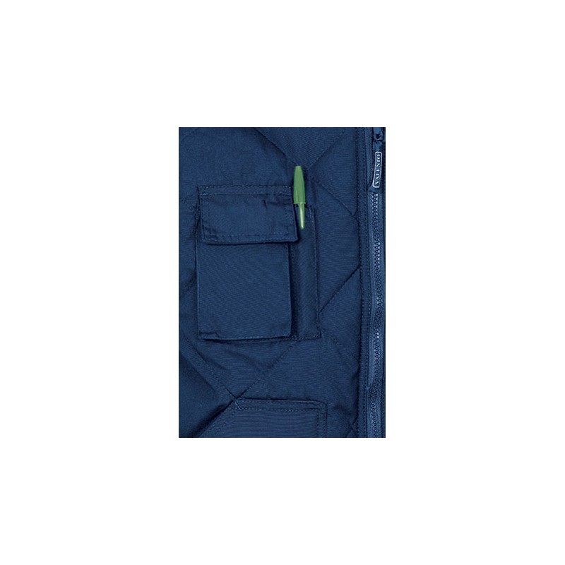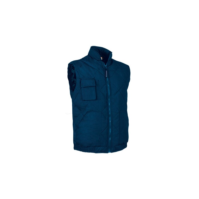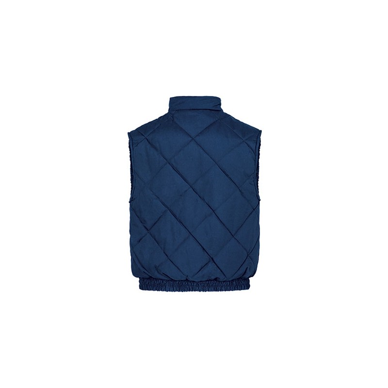 Chaleco confeccionado en tejido a la plana con pespuntes en forma de rombos, relleno acolchado y forro interior.