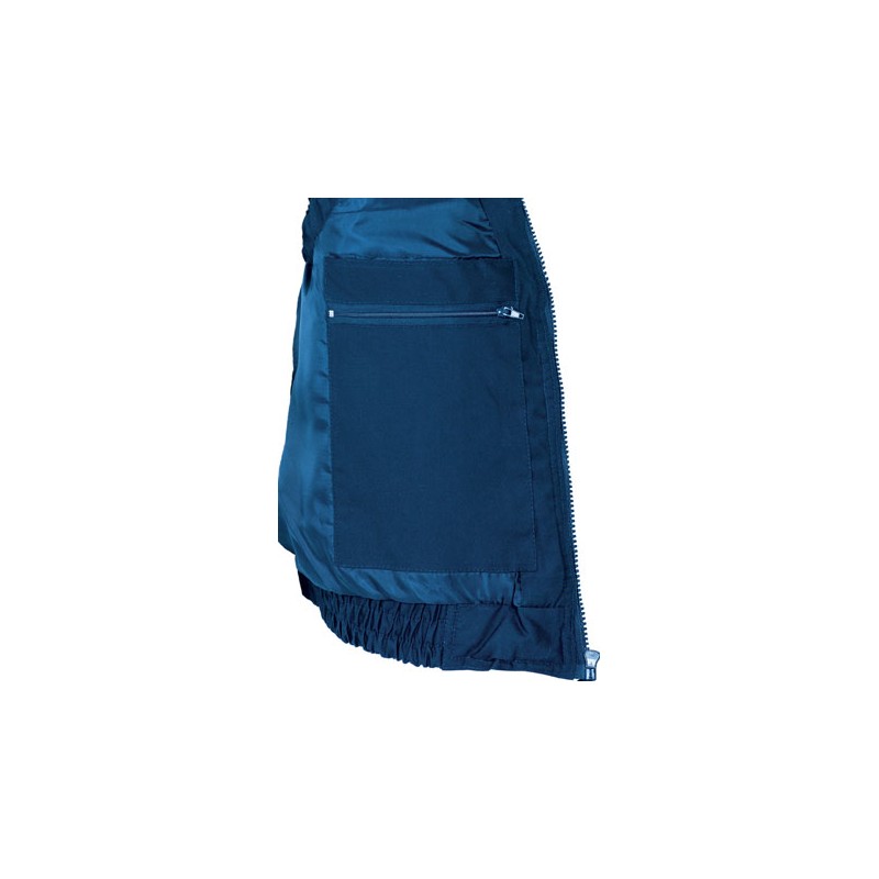 En la parte delantera incluye dos bolsillos bajos, un departamento para bolígrafo y un bolsillo en pecho derecho para el móvil.