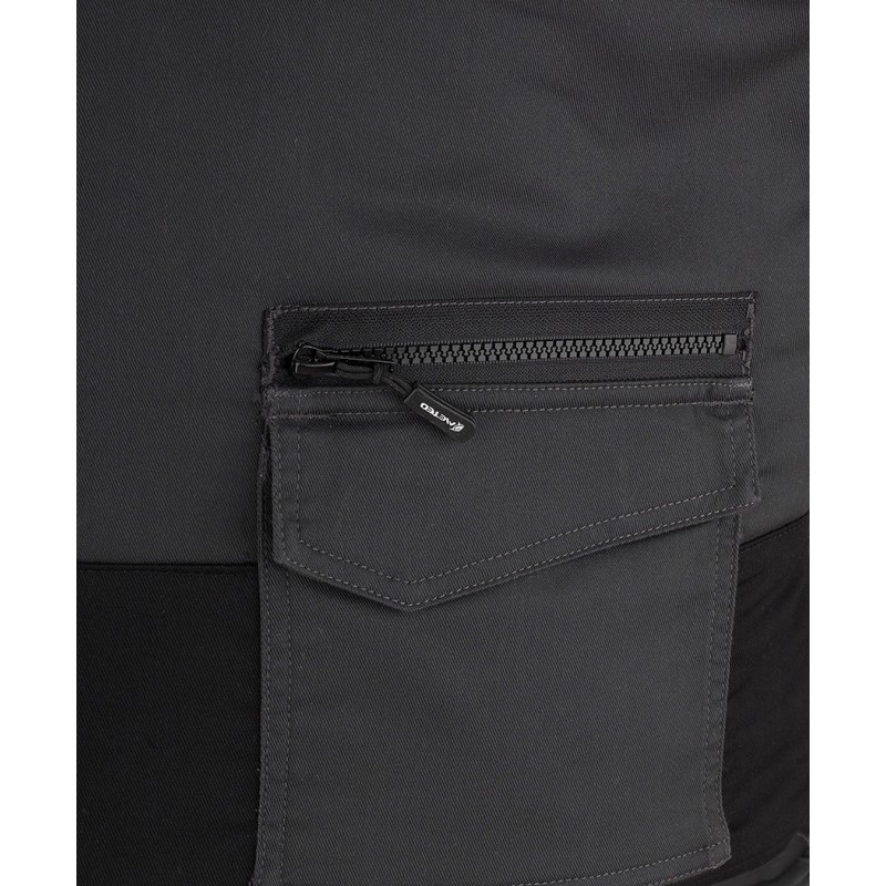 Chaleco stretch de color gris con contrastes en negro en zona inferior del panel frontal y hombros.