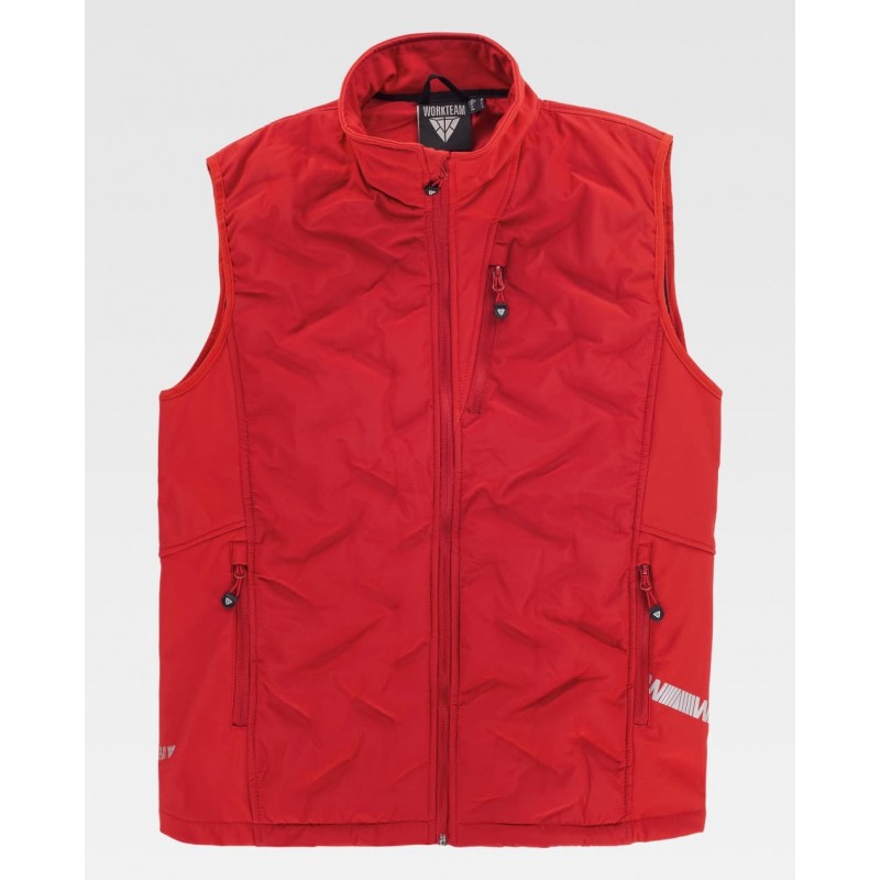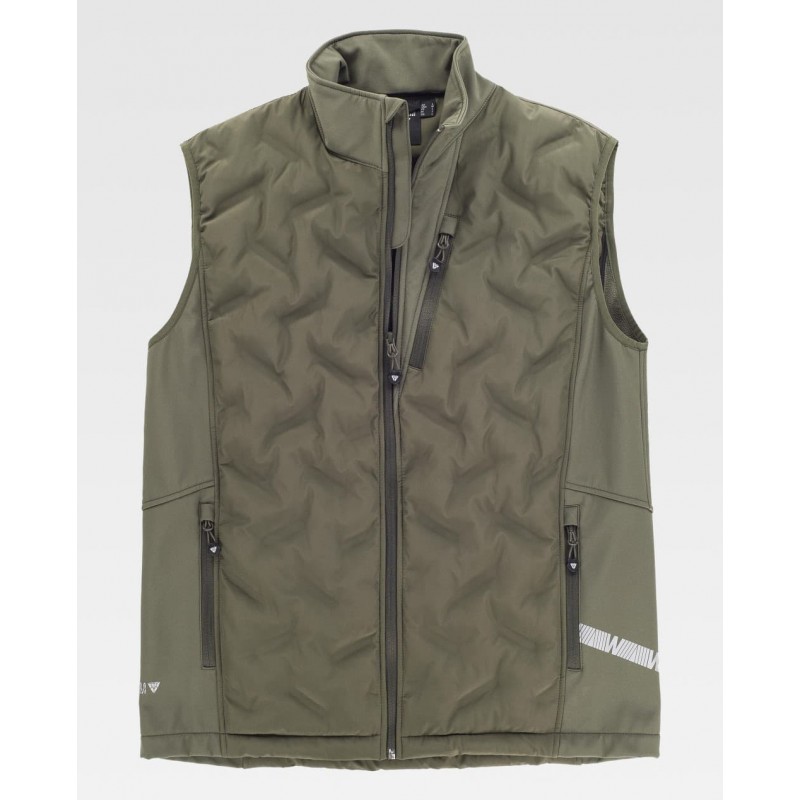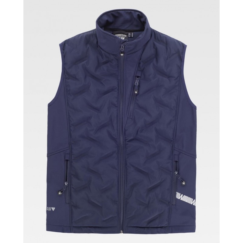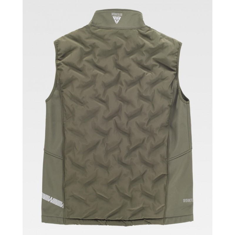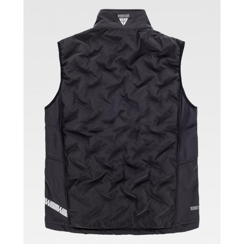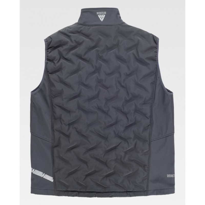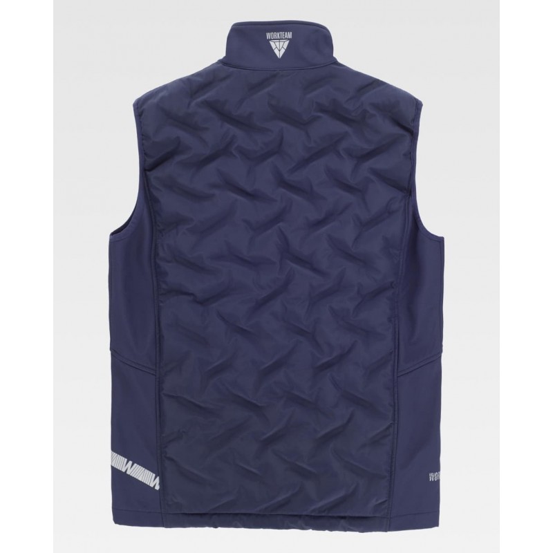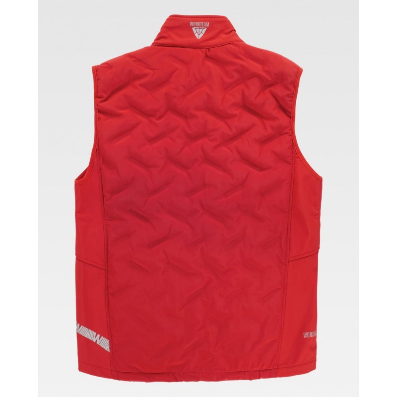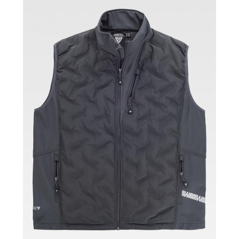 Chaleco Workshell combinado con tejido acolchado sellado y con detalles reflectantes y cuello alto con cierre de cremallera de nylon.