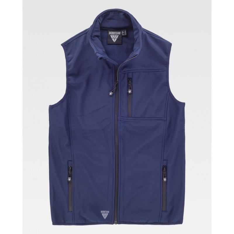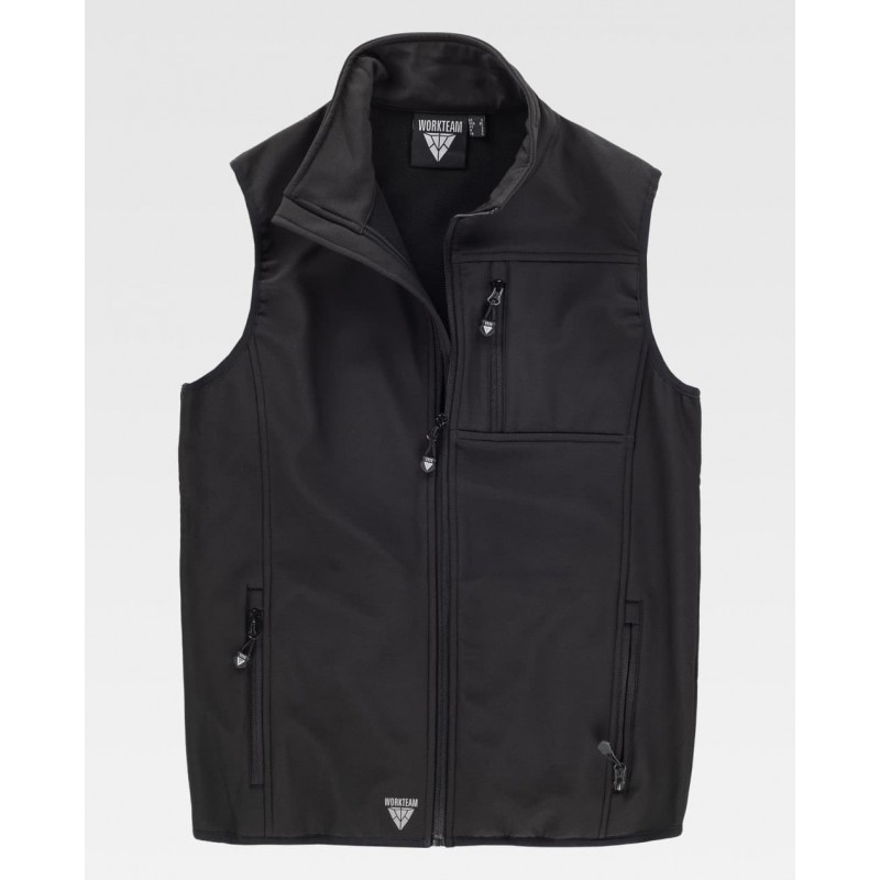 Chaleco Workshell doble capa, cuello alto y cierre de cremallera de nylon y solapa protectora interior vuelta en la parte superior cubriendo la cremallera.