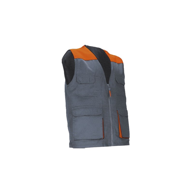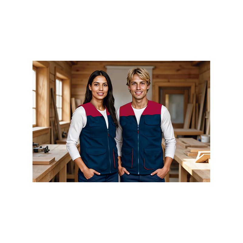 Chaleco de trabajo ligero bicolor multibolsillos.