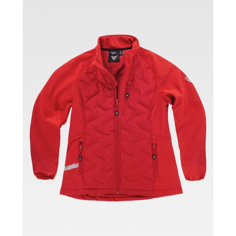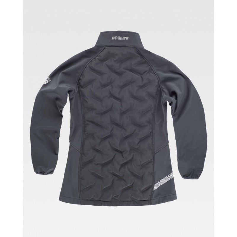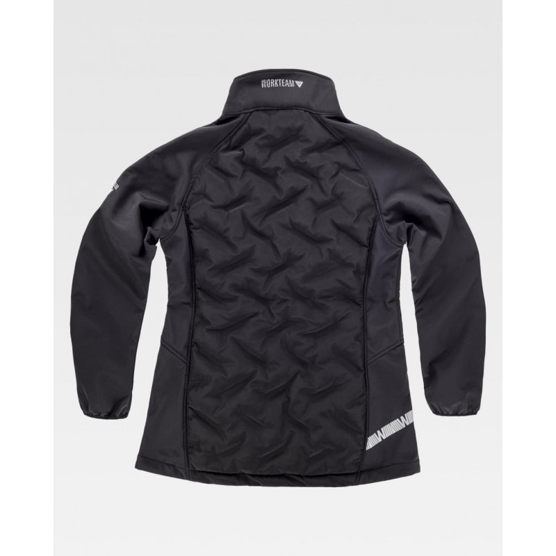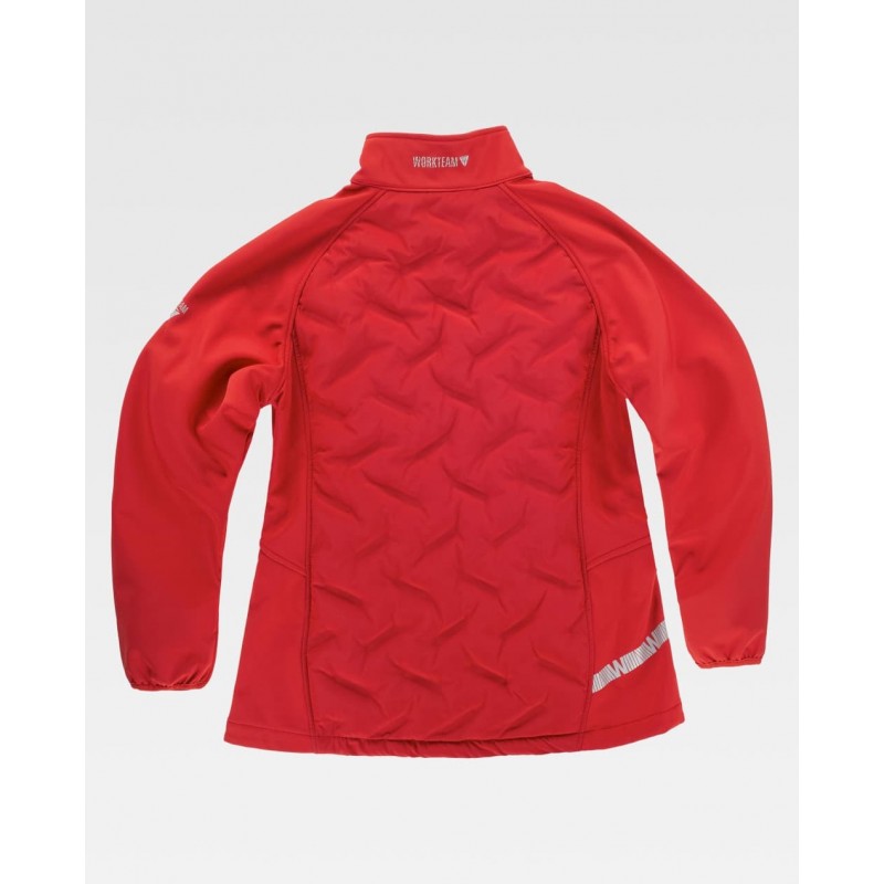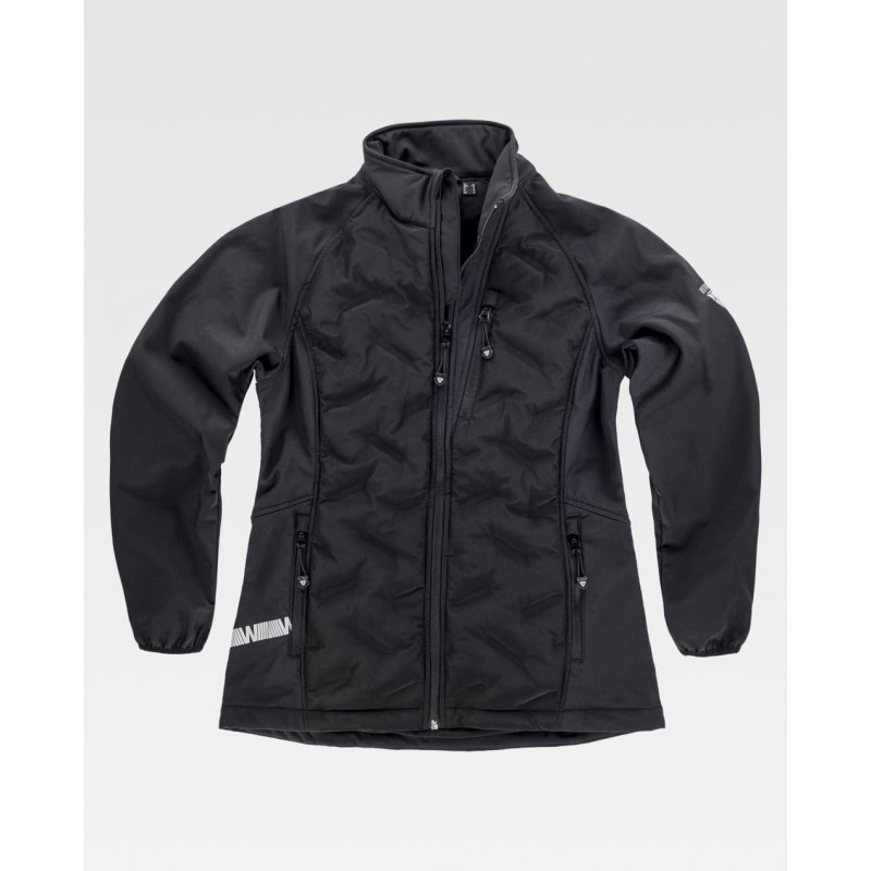Workshell de mujer combinada con tejido acolchado sellado y con detalles reflectantes.