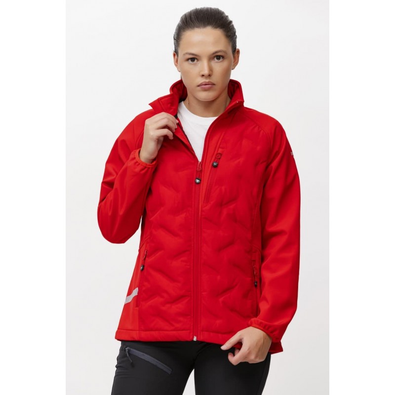 Workshell de mujer combinada con tejido acolchado sellado y con detalles reflectantes y cuello alto con cierre de cremallera de nylon.