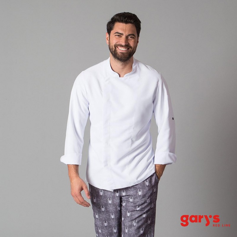 Para mayor versatilidad, la chaqueta de cocina unisex MEJIA RED LINE (REDLINE) también está disponible en una versión de manga corta (943300).