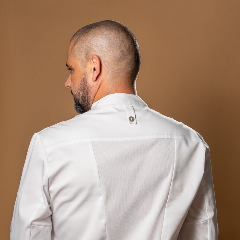 Chaqueta GASTROCHEF unisex en manga larga con cuello camisero, cierre central mediante botones de presión ocultos y con bolsillo en manga izquierda y modelo semi ajustado. Aspecto elegante y durabilidad, con paneles de tejido piqué COOLMAX estratégicamente ubicados en las mangas y la espalda. Estos paneles técnicos trabajan incansablemente para regular la...