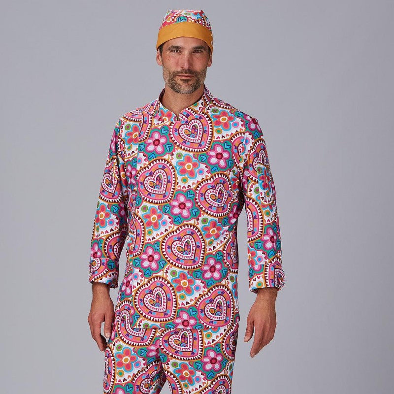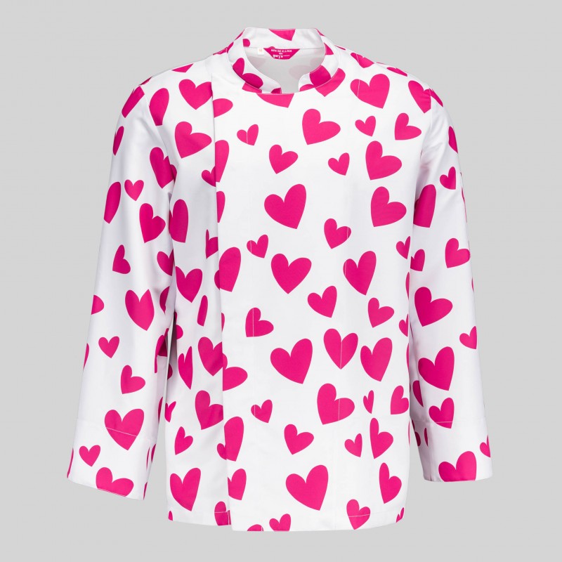 La chaqueta está disponible en dos estampados únicos: "Cuore Rosa" y "Mexicano", lo que te permite destacar en la cocina mientras mantienes una apariencia profesional.