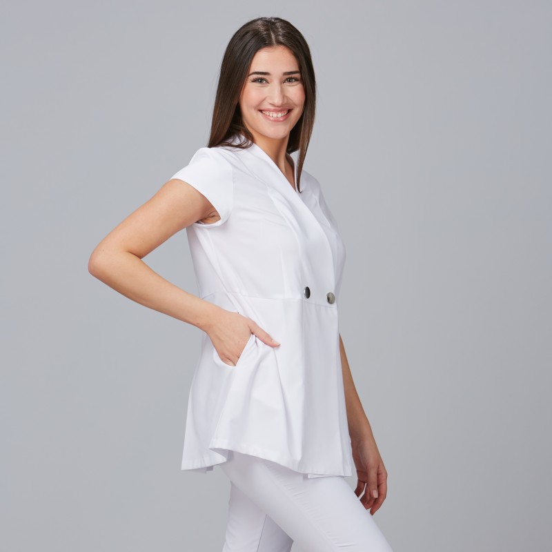 La chaqueta Lirio combina elegancia y comodidad para el trabajo diario en centros de belleza.