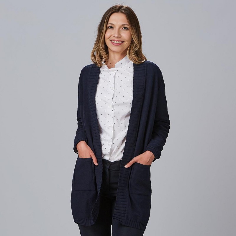 Rebeca de punto para mujer con diseño semi ajustado que aporta calidez ligera y una imagen profesional pulida. Frontal con botones y canalé en bocamanga y bajo para mayor confort, sujeción y durabilidad en el uso diario. Dos bolsillos delanteros prácticos para tener a mano accesorios y pequeños útiles en la jornada.