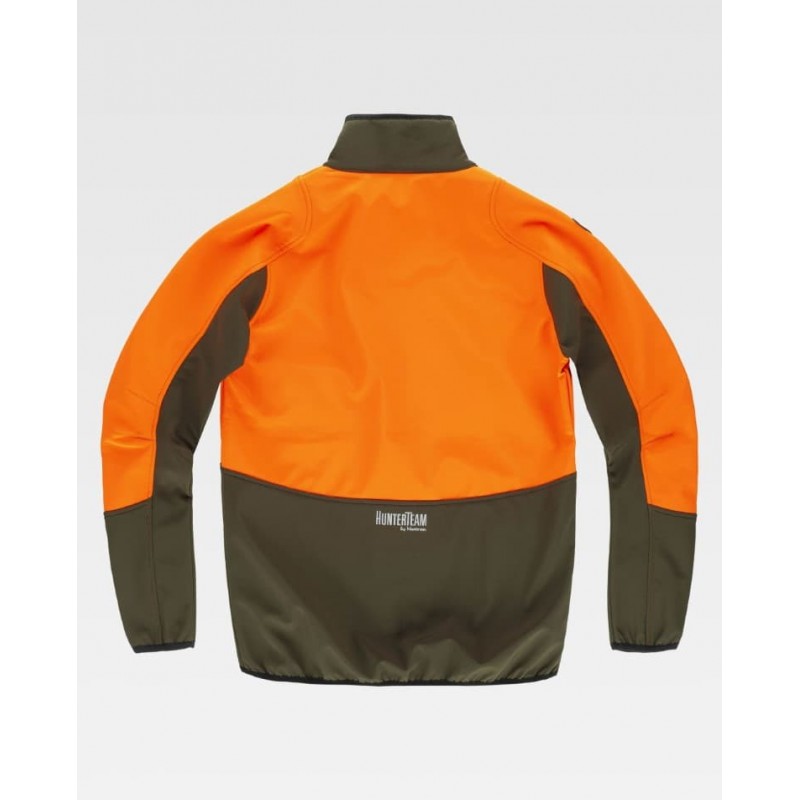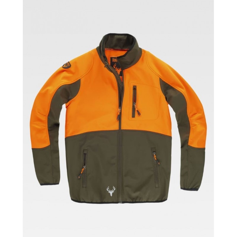 Chaqueta workshell combinada de manga ranglán, pensada para uso profesional con un equilibrio entre comodidad, abrigo ligero y libertad de movimiento. Incluye bolsillos laterales y dos en pecho con cierre de cremallera, interior polar con patrón de cuadrícula, cuello alto y tejido elástico para un ajuste cómodo durante la jornada.
