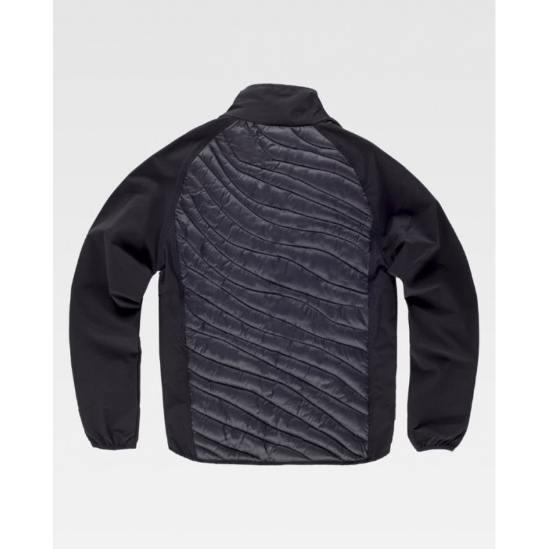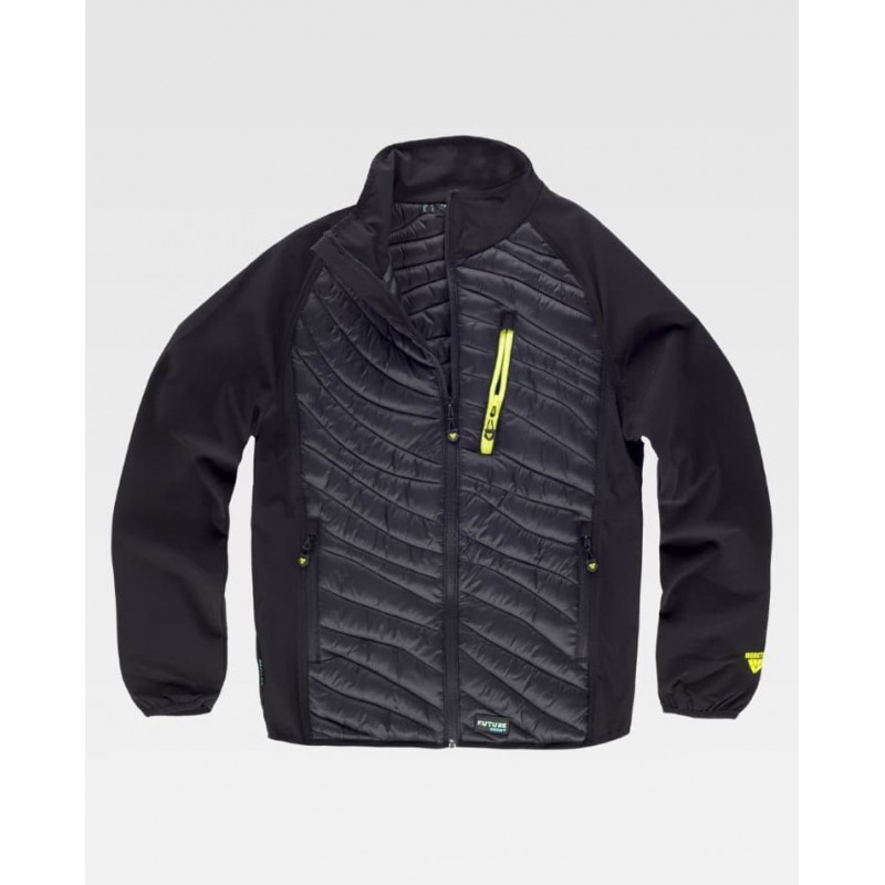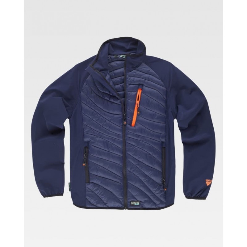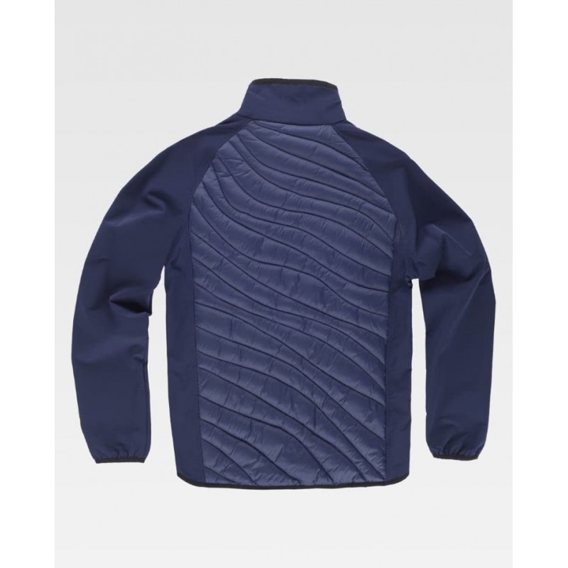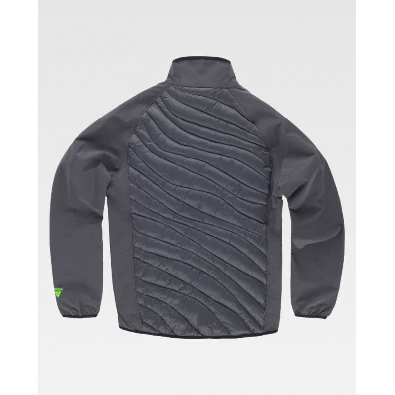 Chaleco combinado con acolchado y cuello alto, pensado para aportar comodidad y ligereza en trabajos de industria y exterior. Incluye cierre de cremallera, un bolsillo en pecho y dos bolsillos laterales interiores, con detalles fluorescentes a contraste y acabado ribeteado con bies elástico.