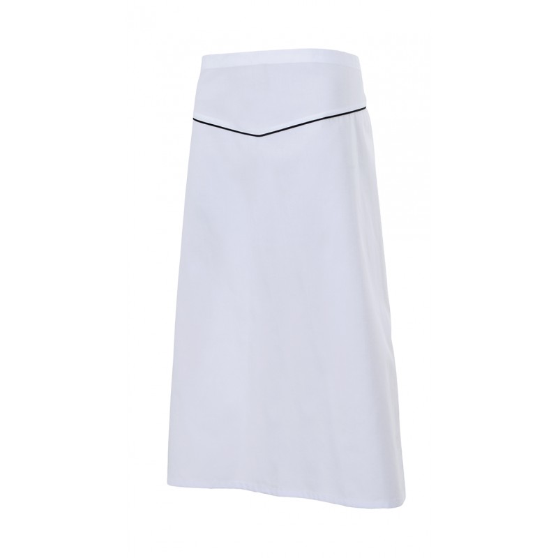 Delantal corto con bolsillo y dos tiras en los extremos, para ajustar la prenda.